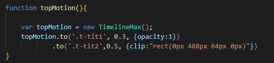 Timeline을 호출하려면 먼저 새로운 TimeLineLite로 새로운 변수를 생성해야 한다.